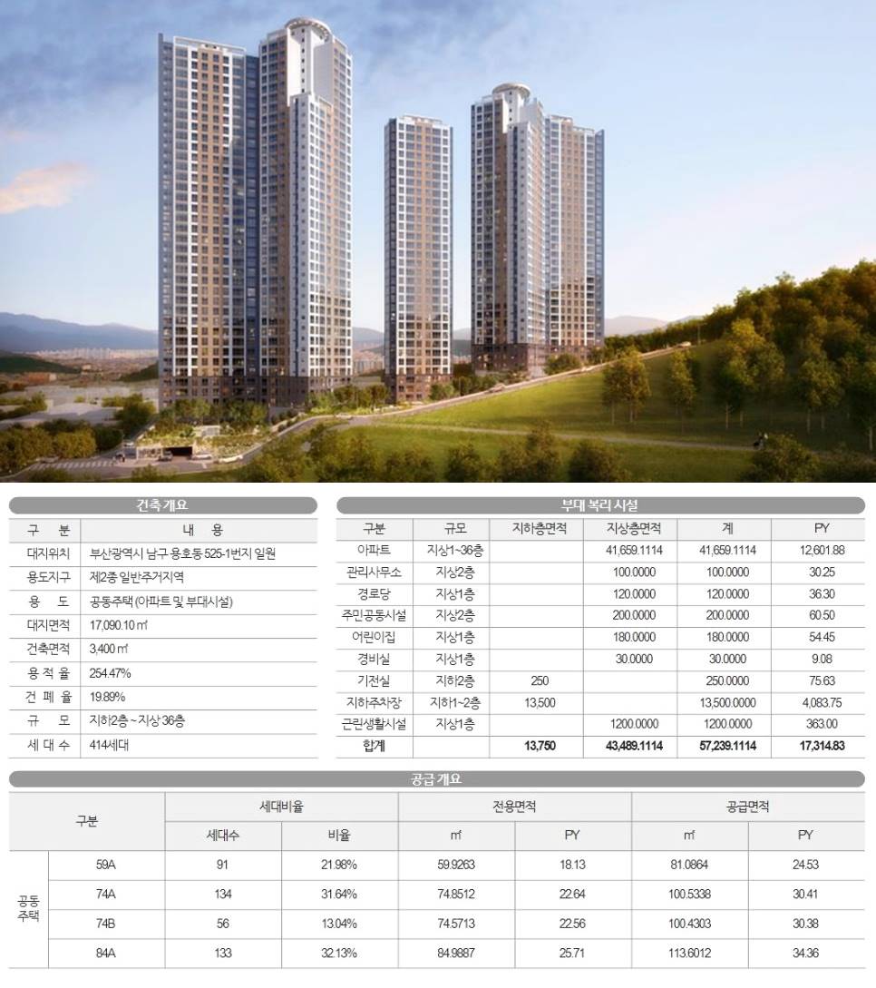 남구 내 신축 브랜드 단지로서의 희소가치를 보유하고 있어 향후 지역 시세를 견인하는 랜드마크로서의 비전이 밝습니다.